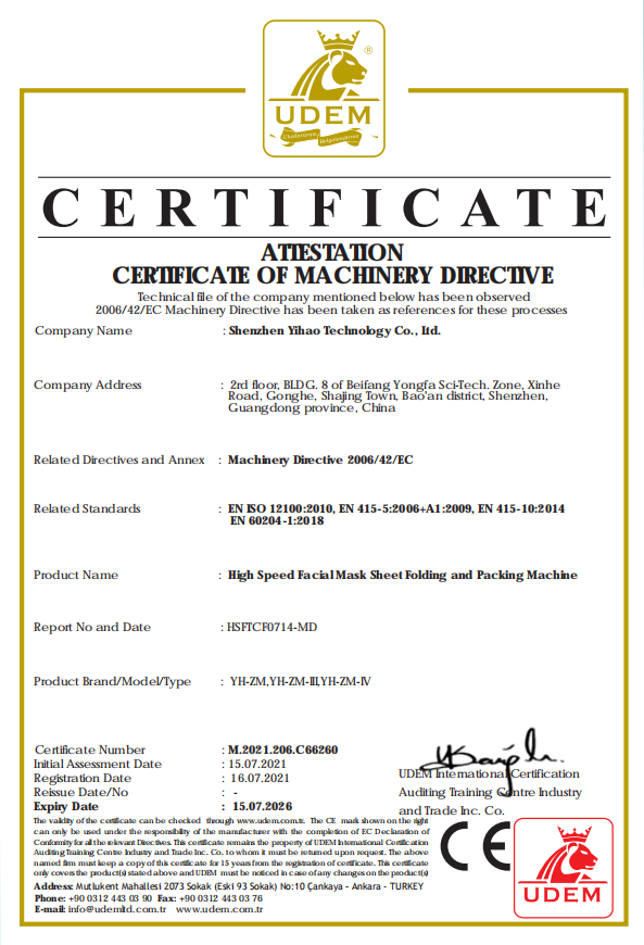 CE認證 益豪科技 面膜設備 面膜機 高速面膜折疊入袋一體機 面膜灌裝機